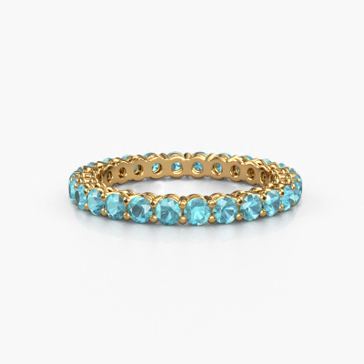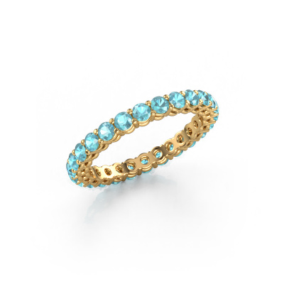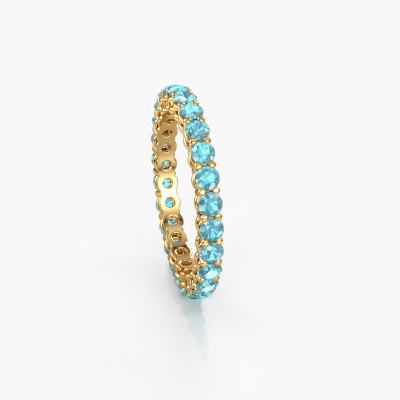 This is our Michelle full 2.4 ring. This specific type is called an eternity ring and it is set with a continuous line of identically cut gemstones. The ring is made in 14 Carat gold and is set with small blue topaz, 2.4 mm. This gold Eternity ring is a perfectly beautiful and meaningful way to give your proposal that special touch. The magnificent evenly shaped blue topaz are pave set around the ring. The identical blue topaz are carefully selected to give the ring a maximum effect. Do keep in mind we use natural resources so small differences between stones are common. The special effect is enhanced due to precise positioning of the blue topaz. This requires the utmost precision and a skilful hand but for our skilled artisans this is what excites them. The result is a stackable ring with a row of blue topaz which seem to have no beginning nor end. The perfect symbol of your love for her! Isn't she a beauty?After receiving your order, our goldsmiths will start the creative process of making your Michelle full 2.4 ring. We don't keep stock. This is advantageous because these costs will not be passed on to you. Therefore, we can offer jewellery at exceptionally low prices.