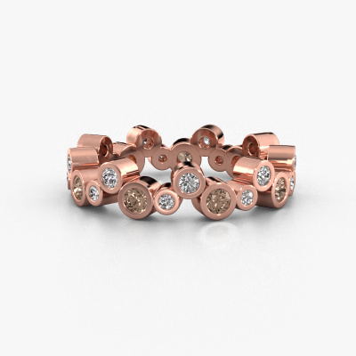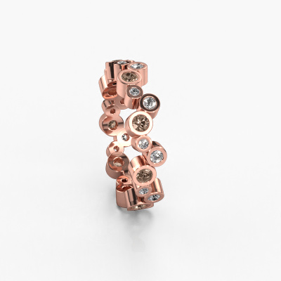 This is our Tessa ring. This specific type is called an eternity ring and it is set with a continuous line of identically cut gemstones. The ring is made in 14 Carat rose gold and is set with small brown diamonds, 0.06 crt. This rose gold Eternity ring is a perfectly beautiful and meaningful way to give your proposal that special touch. The magnificent evenly shaped brown diamonds are pave set around the ring. The identical brown diamonds are carefully selected to give the ring a maximum effect. Do keep in mind we use natural resources so small differences between stones are common. The special effect is enhanced due to precise positioning of the brown diamonds. This requires the utmost precision and a skilful hand but for our skilled artisans this is what excites them. The result is a ring with a row of brown diamonds which seem to have no beginning nor end. The perfect symbol of your love for her! Isn't she a beauty?By using our modern techniques, we can design and customize the finest quality jewels with the utmost care for you. Our rings are always priced 30 percent lower than other jewellers. We make rings to order, so we don't have to maintain a large stock. If you have a certain budget, we are more than happy to advice you accordingly.Our talented designers add new designs to our online collection daily. Together they create a diverse collection of the finest jewellery. If you prefer to make a ring according your own design, please feel free to request a quote. We will make you an amazing offer, based on quality and price.To make it easier for you, we offer a 30 day return policy. Check our terms and conditions.