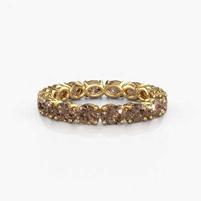 This is our Vivienne OVL 4x3 ring. This specific type is called an eternity ring and it is set with a continuous line of identically cut gemstones. The ring is made in 14 Carat gold and is set with small brown diamonds, 0.15 crt. This gold Eternity ring is a perfectly beautiful and meaningful way to give your proposal that special touch. The magnificent evenly shaped brown diamonds are pave set around the ring. The identical brown diamonds are carefully selected to give the ring a maximum effect. Do keep in mind we use natural resources so small differences between stones are common. The special effect is enhanced due to precise positioning of the brown diamonds. This requires the utmost precision and a skilful hand but for our skilled artisans this is what excites them. The result is a ring with a row of brown diamonds which seem to have no beginning nor end. The perfect symbol of your love for her! Isn't she a beauty?Because we design and deliver our own rings, we can offer you a ring at a price you won't find anywhere else. A ring is made to order, which helps prevent excess supplies, so we can make you a great price offer. We understand it feels risky, buying your ring online, but we will gladly assist in the designing process, taking your budget into consideration.Our team of talented, passionate designers add new ring designs to our online collection daily. Our objective in doing so, is to be able to offer you a wide variety of jewels. Please feel free to request a quote if you have specific wishes for your ring. We guarantee to make you an offer you can't refuse.To make it easier for you, we offer a 30 day return policy. Check our terms and conditions.