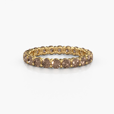 This is our Heddy rnd 2.7 ring. This specific type is called an eternity ring and it is set with a continuous line of identically cut gemstones. The ring is made in 14 Carat gold and is set with small brown diamonds, 0.08 crt. This gold Eternity ring is a perfectly beautiful and meaningful way to give your proposal that special touch. The magnificent evenly shaped brown diamonds are pave set around the ring. The identical brown diamonds are carefully selected to give the ring a maximum effect. Do keep in mind we use natural resources so small differences between stones are common. The special effect is enhanced due to precise positioning of the brown diamonds. This requires the utmost precision and a skilful hand but for our skilled artisans this is what excites them. The result is a stackable ring with a row of brown diamonds which seem to have no beginning nor end. The perfect symbol of your love for her! Isn't she a beauty?Because we design and deliver our own rings, we can offer you a ring at a price you won't find anywhere else. A ring is made to order, which helps prevent excess supplies, so we can make you a great price offer. We understand it feels risky, buying your ring online, but we will gladly assist in the designing process, taking your budget into consideration.Our team of talented, passionate designers add new ring designs to our online collection daily. Our objective in doing so, is to be able to offer you a wide variety of jewels. Please feel free to request a quote if you have specific wishes for your ring. We guarantee to make you an offer you can't refuse.To make it easier for you, we offer a 30 day return policy. Check our terms and conditions.