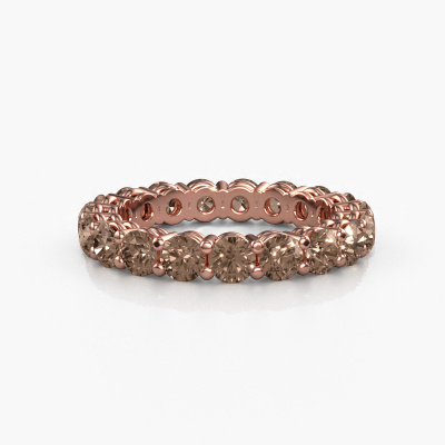 This is our Michelle full 3.4 ring. This specific type is called an eternity ring and it is set with a continuous line of identically cut gemstones. The ring is made in 14 Carat rose gold and is set with small brown diamonds, 0.15 crt. This rose gold Eternity ring is a perfectly beautiful and meaningful way to give your proposal that special touch. The magnificent evenly shaped brown diamonds are pave set around the ring. The identical brown diamonds are carefully selected to give the ring a maximum effect. Do keep in mind we use natural resources so small differences between stones are common. The special effect is enhanced due to precise positioning of the brown diamonds. This requires the utmost precision and a skilful hand but for our skilled artisans this is what excites them. The result is a stackable ring with a row of brown diamonds which seem to have no beginning nor end. The perfect symbol of your love for her! Isn't she a beauty?By using a combination of the latest modern techniques, combined with ancient crafting, we can make all our rings in our own studio. Each jewel is made to order. This is advantageous because we can offer you a price you won't find anywhere else.New jewellery designs are added to our online collection daily. Our team of passionate designers strive to create extraordinary and diverse designs. Have you seen a ring you like? Please feel free to contact us. Based on a good price/ quality ratio, we will make you an offer you can't refuse!To make it easier for you, we offer a 30 day return policy. Check our terms and conditions.