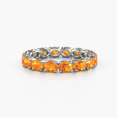 This is our Vivienne OVL 4x3 ring. This specific type is called an eternity ring and it is set with a continuous line of identically cut gemstones. The ring is made in 14 Carat white gold and is set with small citrin, 4x3 mm. This white gold Eternity ring is a perfectly beautiful and meaningful way to give your proposal that special touch. The magnificent evenly shaped citrin are pave set around the ring. The identical citrin are carefully selected to give the ring a maximum effect. Do keep in mind we use natural resources so small differences between stones are common. The special effect is enhanced due to precise positioning of the citrin. This requires the utmost precision and a skilful hand but for our skilled artisans this is what excites them. The result is a ring with a row of citrin which seem to have no beginning nor end. The perfect symbol of your love for her! Isn't she a beauty?Because we design and deliver our own rings, we can offer you a ring at a price you won't find anywhere else. A ring is made to order, which helps prevent excess supplies, so we can make you a great price offer. We understand it feels risky, buying your ring online, but we will gladly assist in the designing process, taking your budget into consideration.Our team of talented, passionate designers add new ring designs to our online collection daily. Our objective in doing so, is to be able to offer you a wide variety of jewels. Please feel free to request a quote if you have specific wishes for your ring. We guarantee to make you an offer you can't refuse.To make it easier for you, we offer a 30 day return policy. Check our terms and conditions.