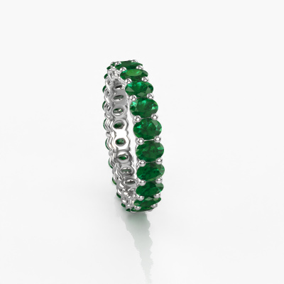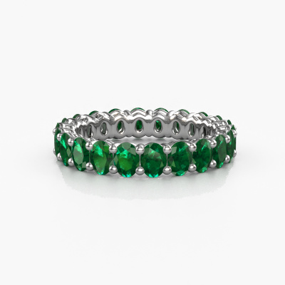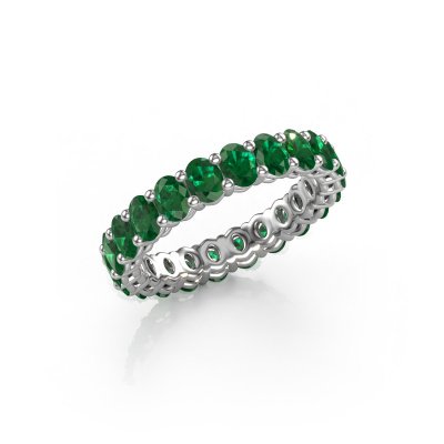 This is our Heddy OVL 3x4 ring. This specific type is called an eternity ring and it is set with a continuous line of identically cut gemstones. The ring is made in 14 Carat white gold and is set with small emerald, 4x3 mm. This white gold Eternity ring is a perfectly beautiful and meaningful way to give your proposal that special touch. The magnificent evenly shaped emerald are pave set around the ring. The identical emerald are carefully selected to give the ring a maximum effect. Do keep in mind we use natural resources so small differences between stones are common. The special effect is enhanced due to precise positioning of the emerald. This requires the utmost precision and a skilful hand but for our skilled artisans this is what excites them. The result is a stackable ring with a row of emerald which seem to have no beginning nor end. The perfect symbol of your love for her! Isn't she a beauty?After receiving your order, our goldsmiths will start the creative process of making your Heddy OVL 3x4 ring. We don't keep stock. This is advantageous because these costs will not be passed on to you. Therefore, we can offer jewellery at exceptionally low prices.