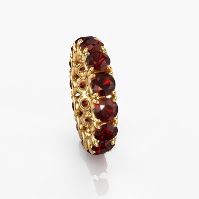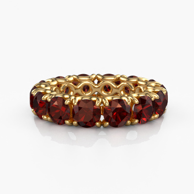 This is our Estee 4.7 ring. This specific type is called an eternity ring and it is set with a continuous line of identically cut gemstones. The ring is made in 14 Carat gold and is set with small garnet, 4.7 mm. This gold Eternity ring is a perfectly beautiful and meaningful way to give your proposal that special touch. The magnificent evenly shaped garnet are pave set around the ring. The identical garnet are carefully selected to give the ring a maximum effect. Do keep in mind we use natural resources so small differences between stones are common. The special effect is enhanced due to precise positioning of the garnet. This requires the utmost precision and a skilful hand but for our skilled artisans this is what excites them. The result is a ring with a row of garnet which seem to have no beginning nor end. The perfect symbol of your love for her! Isn't she a beauty?By using our modern techniques, we can design and customize the finest quality jewels with the utmost care for you. Our rings are always priced 30 percent lower than other jewellers. We make rings to order, so we don't have to maintain a large stock. If you have a certain budget, we are more than happy to advice you accordingly.