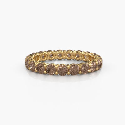 This is our Heddy rnd 2.9 ring. This specific type is called an eternity ring and it is set with a continuous line of identically cut gemstones. The ring is made in 14 Carat gold and is set with small brown diamonds, 1.995 crt. The amazing brown diamonds are identical in size and are set in the ring band. Our brown diamonds are selected with great care so they are identical, which gives the best result. In order to get the best result, our artisans position all brown diamonds by hand with the utmost care. Our Goldsmiths have one ambition, which is creating the perfect ring. That is why we love what we do. In the end you get a stunning classic gold ring with a row of brown diamonds which seem to have no beginning nor end. The perfect symbol of your undying love for her! How special is that!By using a combination of the latest modern techniques, combined with ancient crafting, we can make all our rings in our own studio. Each jewel is made to order. This is advantageous because we can offer you a price you won't find anywhere else.