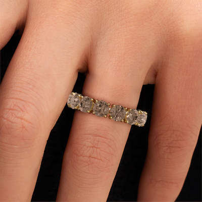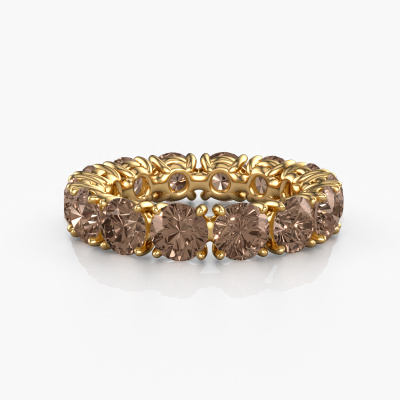 This is our Vivienne 4.7 ring. This specific type is called an eternity ring and it is set with a continuous line of identically cut gemstones. The ring is made in 14 Carat gold and is set with small brown diamonds, 5.60 crt. The amazing brown diamonds are identical in size and are set in the ring band. Our brown diamonds are selected with great care so they are identical, which gives the best result. In order to get the best result, our artisans position all brown diamonds by hand with the utmost care. Our Goldsmiths have one ambition, which is creating the perfect ring. That is why we love what we do. In the end you get a stunning exclusive gold ring with a row of brown diamonds which seem to have no beginning nor end. The perfect symbol of your undying love for her! How special is that!After receiving your order, our goldsmiths will passionately start the creative process of making your ring in our own studio. Because we don't have a big stockpile, these costs will not be passed on to you. Our pricing is proof of that! We offer top quality jewels at lowest price, guaranteed.Our talented designers add new designs to our online collection daily. Together they create a diverse collection of the finest jewellery. If you prefer to make a ring according your own design, please feel free to request a quote. We will make you an amazing offer, based on quality and price.To make it easier for you, we offer a 30 day return policy. Check our terms and conditions.