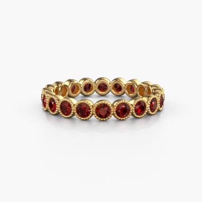 This is our Mariam 0.05 ring. This specific type is called an eternity ring and it is set with a continuous line of identically cut gemstones. The ring is made in 14 Carat gold and is set with small garnet, 2.4 mm. The amazing garnet are identical in size and are set in the ring band. Our garnet are selected with great care so they are identical, which gives the best result. In order to get the best result, our artisans position all garnet by hand with the utmost care. Our Goldsmiths have one ambition, which is creating the perfect ring. That is why we love what we do. In the end you get a stunning modern gold ring with a row of garnet which seem to have no beginning nor end. The perfect symbol of your undying love for her! How special is that!By using a combination of the latest modern techniques, combined with ancient crafting, we can make all our rings in our own studio. Each jewel is made to order. This is advantageous because we can offer you a price you won't find anywhere else.