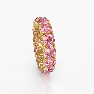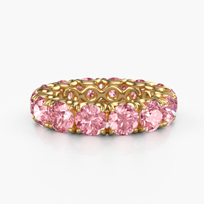 This is our Estee 5.0 ring. This specific type is called an eternity ring and it is set with a continuous line of identically cut gemstones. The ring is made in 14 Carat gold and is set with small pink lab grown diamonds, 5 mm. The amazing pink lab grown diamonds are identical in size and are set in the ring band. Our pink lab grown diamonds are selected with great care so they are identical, which gives the best result. In order to get the best result, our artisans position all pink lab grown diamonds by hand with the utmost care. Our Goldsmiths have one ambition, which is creating the perfect ring. That is why we love what we do. In the end you get a stunning exclusive gold ring with a row of pink lab grown diamonds which seem to have no beginning nor end. The perfect symbol of your undying love for her! How special is that!Are you on a budget? Please feel free to contact us, so we can go discuss your options. We offer our rings at guaranteed best price, because we make them to order. You won't find such a price anywhere else!Our talented designers add new designs to our online collection daily. Together they create a diverse collection of the finest jewellery. If you prefer to make a ring according your own design, please feel free to request a quote. We will make you an amazing offer, based on quality and price.To make it easier for you, we offer a 30 day return policy. Check our terms and conditions.