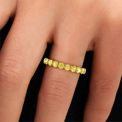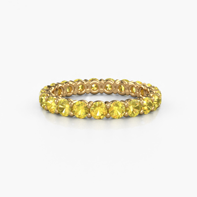 This is our Heddy rnd 2.9 ring. This specific type is called an eternity ring and it is set with a continuous line of identically cut gemstones. The ring is made in 14 Carat gold and is set with small yellow sapphire, 2.9 mm. The amazing yellow sapphire are identical in size and are set in the ring band. Our yellow sapphire are selected with great care so they are identical, which gives the best result. In order to get the best result, our artisans position all yellow sapphire by hand with the utmost care. Our Goldsmiths have one ambition, which is creating the perfect ring. That is why we love what we do. In the end you get a stunning classic gold ring with a row of yellow sapphire which seem to have no beginning nor end. The perfect symbol of your undying love for her! How special is that!By using a combination of the latest modern techniques, combined with ancient crafting, we can make all our rings in our own studio. Each jewel is made to order. This is advantageous because we can offer you a price you won't find anywhere else.