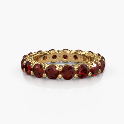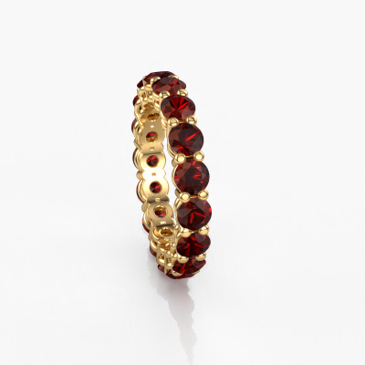 This is our Michelle full 3.7 ring. This specific type is called an eternity ring and it is set with a continuous line of identically cut gemstones. The ring is made in 14 Carat gold and is set with small garnet, 3.7 mm. The amazing garnet are identical in size and are set in the ring band. Our garnet are selected with great care so they are identical, which gives the best result. In order to get the best result, our artisans position all garnet by hand with the utmost care. Our Goldsmiths have one ambition, which is creating the perfect ring. That is why we love what we do. In the end you get a stunning modern gold stackable ring with a row of garnet which seem to have no beginning nor end. The perfect symbol of your undying love for her! How special is that!Because we design and deliver our own rings, we can offer you a ring at a price you won't find anywhere else. A ring is made to order, which helps prevent excess supplies, so we can make you a great price offer. We understand it feels risky, buying your ring online, but we will gladly assist in the designing process, taking your budget into consideration.Our team of talented, passionate designers add new ring designs to our online collection daily. Our objective in doing so, is to be able to offer you a wide variety of jewels. Please feel free to request a quote if you have specific wishes for your ring. We guarantee to make you an offer you can't refuse.To make it easier for you, we offer a 30 day return policy. Check our terms and conditions.