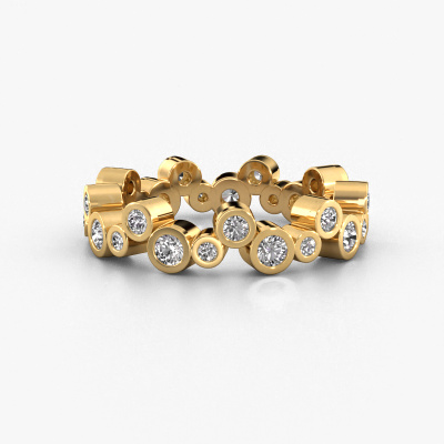 This is our Tessa ring. This specific type is called an eternity ring and it is set with a continuous line of identically cut gemstones. The ring is made in 14 Carat gold and is set with small lab-grown diamonds, 0.06 crt. This gold Eternity ring is a perfectly beautiful and meaningful way to give your proposal that special touch. The magnificent evenly shaped lab-grown diamonds are pave set around the ring. The identical lab-grown diamonds are carefully selected to give the ring a maximum effect. Do keep in mind we use natural resources so small differences between stones are common. The special effect is enhanced due to precise positioning of the lab-grown diamonds. This requires the utmost precision and a skilful hand but for our skilled artisans this is what excites them. The result is a ring with a row of lab-grown diamonds which seem to have no beginning nor end. The perfect symbol of your love for her! Isn't she a beauty?By using our modern techniques, we can design and customize the finest quality jewels with the utmost care for you. Our rings are always priced 30 percent lower than other jewellers. We make rings to order, so we don't have to maintain a large stock. If you have a certain budget, we are more than happy to advice you accordingly.Our talented designers add new designs to our online collection daily. Together they create a diverse collection of the finest jewellery. If you prefer to make a ring according your own design, please feel free to request a quote. We will make you an amazing offer, based on quality and price.To make it easier for you, we offer a 30 day return policy. Check our terms and conditions.