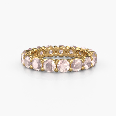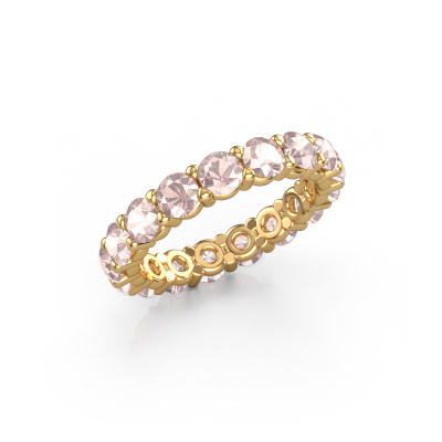 This is our Heddy rnd 3.7 ring. This specific type is called an eternity ring and it is set with a continuous line of identically cut gemstones. The ring is made in 14 Carat gold and is set with small morganite champagne, 3.7 mm. This gold Eternity ring is a perfectly beautiful and meaningful way to give your proposal that special touch. The magnificent evenly shaped morganite champagne are pave set around the ring. The identical morganite champagne are carefully selected to give the ring a maximum effect. Do keep in mind we use natural resources so small differences between stones are common. The special effect is enhanced due to precise positioning of the morganite champagne. This requires the utmost precision and a skilful hand but for our skilled artisans this is what excites them. The result is a stackable ring with a row of morganite champagne which seem to have no beginning nor end. The perfect symbol of your love for her! Isn't she a beauty?