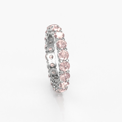 This is our Michelle full 3.4 ring. This specific type is called an eternity ring and it is set with a continuous line of identically cut gemstones. The ring is made in platinum and is set with small morganite champagne, 3.4 mm. This platinum Eternity ring is a perfectly beautiful and meaningful way to give your proposal that special touch. The magnificent evenly shaped morganite champagne are pave set around the ring. The identical morganite champagne are carefully selected to give the ring a maximum effect. Do keep in mind we use natural resources so small differences between stones are common. The special effect is enhanced due to precise positioning of the morganite champagne. This requires the utmost precision and a skilful hand but for our skilled artisans this is what excites them. The result is a stackable ring with a row of morganite champagne which seem to have no beginning nor end. The perfect symbol of your love for her! Isn't she a beauty?