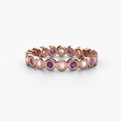 This is our Edwina 1 ring. This specific type is called an eternity ring and it is set with a continuous line of identically cut gemstones. The ring is made in 14 Carat rose gold and is set with small morganite champagne, 2 mm. This rose gold Eternity ring is a perfectly beautiful and meaningful way to give your proposal that special touch. The magnificent evenly shaped morganite champagne are pave set around the ring. The identical morganite champagne are carefully selected to give the ring a maximum effect. Do keep in mind we use natural resources so small differences between stones are common. The special effect is enhanced due to precise positioning of the morganite champagne. This requires the utmost precision and a skilful hand but for our skilled artisans this is what excites them. The result is a stackable ring with a row of morganite champagne which seem to have no beginning nor end. The perfect symbol of your love for her! Isn't she a beauty?