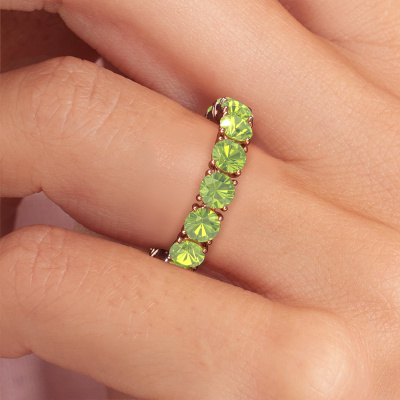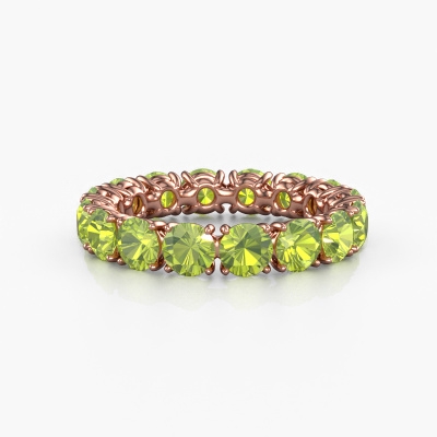This Vivienne 4.0 stackable ring in 14 Carat rose gold is set with peridot. This rose gold stacked Vivienne 4.0 ring is the perfect addition to your ring collection! As the name suggests, it is a ring which can be combined on one finger with another ring. It gives you the opportunity to create your own style. A stacked ring usually represents a certain memory of someone special or a memorable moment. It is common to combine a stacked ring, representing an anniversary, with a wedding ring. But this eternity ring, combined with your other rings, also makes a classy fashion item. A customized modern stackable ring is the perfect gift! New exquisite designs are added daily by our team of passionate goldsmiths. And each design can be customized. Simply customize the precious metals and the colour of gemstones which will be used, for example. This makes your design of the modern Vivienne 4.0 stackable ring truly unique!Because we design and deliver our own rings, we can offer you a ring at a price you won't find anywhere else. A ring is made to order, which helps prevent excess supplies, so we can make you a great price offer. We understand it feels risky, buying your ring online, but we will gladly assist in the designing process, taking your budget into consideration.To make it easier for you, we offer a 30 day return policy. Check our terms and conditions.