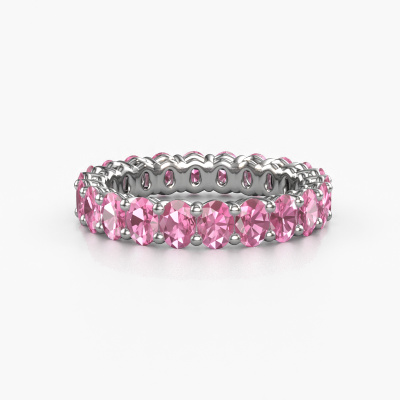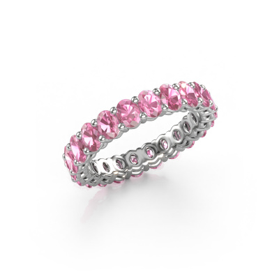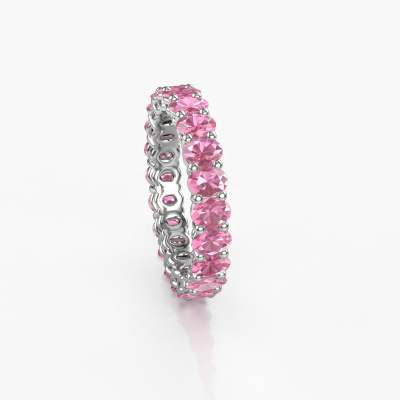 This is our Heddy OVL 3x4 ring. This specific type is called an eternity ring and it is set with a continuous line of identically cut gemstones. The ring is made in 14 Carat white gold and is set with small pink sapphire, 4x3 mm. This white gold Eternity ring is a perfectly beautiful and meaningful way to give your proposal that special touch. The magnificent evenly shaped pink sapphire are pave set around the ring. The identical pink sapphire are carefully selected to give the ring a maximum effect. Do keep in mind we use natural resources so small differences between stones are common. The special effect is enhanced due to precise positioning of the pink sapphire. This requires the utmost precision and a skilful hand but for our skilled artisans this is what excites them. The result is a stackable ring with a row of pink sapphire which seem to have no beginning nor end. The perfect symbol of your love for her! Isn't she a beauty?After receiving your order, our goldsmiths will start the creative process of making your Heddy OVL 3x4 ring. We don't keep stock. This is advantageous because these costs will not be passed on to you. Therefore, we can offer jewellery at exceptionally low prices.