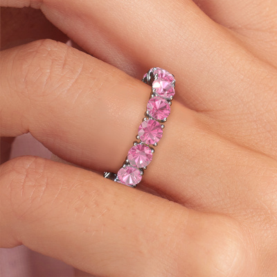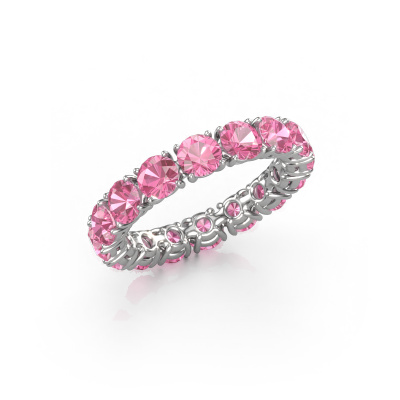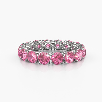 This Vivienne 4.0 stackable ring in 14 Carat white gold is set with pink sapphire. This white gold stacked Vivienne 4.0 ring is the perfect addition to your ring collection! As the name suggests, it is a ring which can be combined on one finger with another ring. It gives you the opportunity to create your own style. A stacked ring usually represents a certain memory of someone special or a memorable moment. It is common to combine a stacked ring, representing an anniversary, with a wedding ring. But this eternity ring, combined with your other rings, also makes a classy fashion item. A customized modern stackable ring is the perfect gift! New exquisite designs are added daily by our team of passionate goldsmiths. And each design can be customized. Simply customize the precious metals and the colour of gemstones which will be used, for example. This makes your design of the modern Vivienne 4.0 stackable ring truly unique!Because we design and deliver our own rings, we can offer you a ring at a price you won't find anywhere else. A ring is made to order, which helps prevent excess supplies, so we can make you a great price offer. We understand it feels risky, buying your ring online, but we will gladly assist in the designing process, taking your budget into consideration.To make it easier for you, we offer a 30 day return policy. Check our terms and conditions.