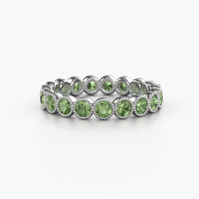 This is our Mariam 0.07 ring. This specific type is called an eternity ring and it is set with a continuous line of identically cut gemstones. The ring is made in platinum and is set with small tourmaline green, 2.7 mm. The amazing tourmaline green are identical in size and are set in the ring band. Our tourmaline green are selected with great care so they are identical, which gives the best result. In order to get the best result, our artisans position all tourmaline green by hand with the utmost care. Our Goldsmiths have one ambition, which is creating the perfect ring. That is why we love what we do. In the end you get a stunning trendy platinum ring with a row of tourmaline green which seem to have no beginning nor end. The perfect symbol of your undying love for her! How special is that!After receiving your order, our goldsmiths will passionately start the creative process of making your ring in our own studio. Because we don't have a big stockpile, these costs will not be passed on to you. Our pricing is proof of that! We offer top quality jewels at lowest price, guaranteed.Our talented designers add new designs to our online collection daily. Together they create a diverse collection of the finest jewellery. If you prefer to make a ring according your own design, please feel free to request a quote. We will make you an amazing offer, based on quality and price.To make it easier for you, we offer a 30 day return policy. Check our terms and conditions.