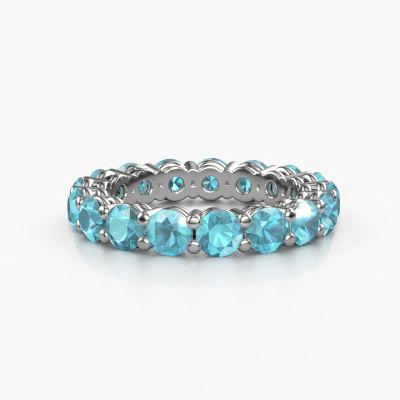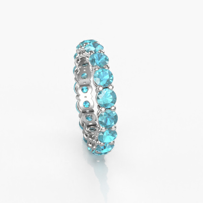 This is our Michelle full 3.7 ring. This specific type is called an eternity ring and it is set with a continuous line of identically cut gemstones. The ring is made in platinum and is set with small blue topaz, 3.7 mm. The amazing blue topaz are identical in size and are set in the ring band. Our blue topaz are selected with great care so they are identical, which gives the best result. In order to get the best result, our artisans position all blue topaz by hand with the utmost care. Our Goldsmiths have one ambition, which is creating the perfect ring. That is why we love what we do. In the end you get a stunning modern platinum stackable ring with a row of blue topaz which seem to have no beginning nor end. The perfect symbol of your undying love for her! How special is that!Because we design and deliver our own rings, we can offer you a ring at a price you won't find anywhere else. A ring is made to order, which helps prevent excess supplies, so we can make you a great price offer. We understand it feels risky, buying your ring online, but we will gladly assist in the designing process, taking your budget into consideration.Our team of talented, passionate designers add new ring designs to our online collection daily. Our objective in doing so, is to be able to offer you a wide variety of jewels. Please feel free to request a quote if you have specific wishes for your ring. We guarantee to make you an offer you can't refuse.To make it easier for you, we offer a 30 day return policy. Check our terms and conditions.