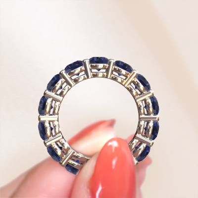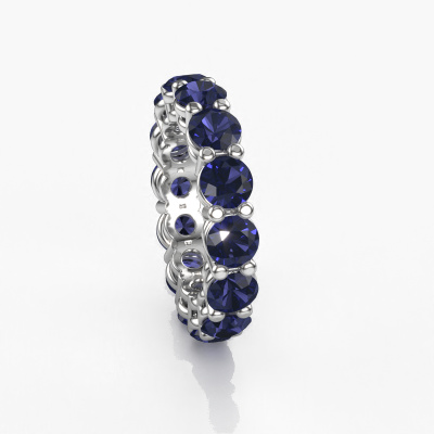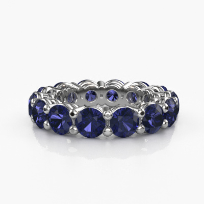 This is our Michelle full 4.7 ring. This specific type is called an eternity ring and it is set with a continuous line of identically cut gemstones. The ring is made in platinum and is set with small sapphire, 4.7 mm. The amazing sapphire are identical in size and are set in the ring band. Our sapphire are selected with great care so they are identical, which gives the best result. In order to get the best result, our artisans position all sapphire by hand with the utmost care. Our Goldsmiths have one ambition, which is creating the perfect ring. That is why we love what we do. In the end you get a stunning exclusive platinum stackable ring with a row of sapphire which seem to have no beginning nor end. The perfect symbol of your undying love for her! How special is that!Because we design and deliver our own rings, we can offer you a ring at a price you won't find anywhere else. A ring is made to order, which helps prevent excess supplies, so we can make you a great price offer. We understand it feels risky, buying your ring online, but we will gladly assist in the designing process, taking your budget into consideration.Our team of talented, passionate designers add new ring designs to our online collection daily. Our objective in doing so, is to be able to offer you a wide variety of jewels. Please feel free to request a quote if you have specific wishes for your ring. We guarantee to make you an offer you can't refuse.To make it easier for you, we offer a 30 day return policy. Check our terms and conditions.