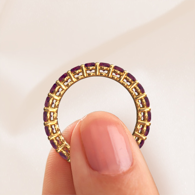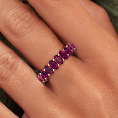 This Heddy OVL 3x5 stackable ring in 14 Carat gold is set with rhodolite. This gold stacked Heddy OVL 3x5 ring is the perfect addition to your ring collection! As the name suggests, it is a ring which can be combined on one finger with another ring. It gives you the opportunity to create your own style. A stacked ring usually represents a certain memory of someone special or a memorable moment. It is common to combine a stacked ring, representing an anniversary, with a wedding ring. But this eternity ring, combined with your other rings, also makes a classy fashion item. Customize your own eternityHeddy OVL 3x5 stackable ring, which will then be created by our goldsmiths with great passion. Do you prefer a different option than is shown here in the gold Heddy OVL 3x5 stackable ring? Then our online tools offers various options. Feel free to ask us for help if you are unable to succeed. We are happy to answer your questions!Because we design and deliver our own rings, we can offer you a ring at a price you won't find anywhere else. A ring is made to order, which helps prevent excess supplies, so we can make you a great price offer. We understand it feels risky, buying your ring online, but we will gladly assist in the designing process, taking your budget into consideration.To make it easier for you, we offer a 30 day return policy. Check our terms and conditions.