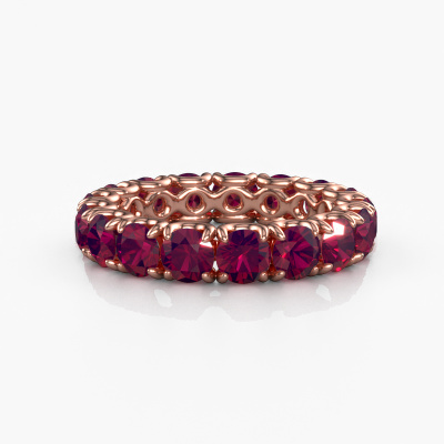 This Estee 4.0 ring in 14 Carat rose gold is set with rhodolite. This rose gold stacked Estee 4.0 ring is the perfect addition to your ring collection! As the name suggests, it is a ring which can be combined on one finger with another ring. It gives you the opportunity to create your own style. A stacked ring usually represents a certain memory of someone special or a memorable moment. It is common to combine a stacked ring, representing an anniversary, with a wedding ring. But this eternity ring, combined with your other rings, also makes a classy fashion item. As soon as you finished designing your Estee 4.0 ring with our online tool, our goldsmiths will start their creative process of making your ring. This will be done with passion and care, according ancient crafting. On top of that, our jewels are made of eco-friendly materials. Simply customize online with our online tool, if you want any changes made. If you want specific changes made to your Estee 4.0 ring, that are unavailable in our online tool, please feel free to contact our expert designers.By using our modern techniques, we can design and customize the finest quality jewels with the utmost care for you. Our rings are always priced 30 percent lower than other jewellers. We make rings to order, so we don't have to maintain a large stock. If you have a certain budget, we are more than happy to advice you accordingly.To make it easier for you, we offer a 30 day return policy. Check our terms and conditions.
