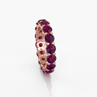 This Heddy rnd 4.0 stackable ring in 14 Carat rose gold is set with rhodolite. This rose gold stacked Heddy rnd 4.0 ring is the perfect addition to your ring collection! As the name suggests, it is a ring which can be combined on one finger with another ring. It gives you the opportunity to create your own style. A stacked ring usually represents a certain memory of someone special or a memorable moment. It is common to combine a stacked ring, representing an anniversary, with a wedding ring. But this eternity ring, combined with your other rings, also makes a classy fashion item. How do you like this exclusive rose gold stackable ring? Simply customize this Heddy rnd 4.0 stackable ring, using our online tool. Subsequently, your personal eternity Heddy rnd 4.0 stackable ring will be made by hand by our goldsmiths. Precious metals and gemstones can be customized to your liking. Do you have specific preferences which are unavailable in our online tool? Please feel free to contact us. We will customize your personal exclusive stackable ring to your liking.Are you on a budget? Please feel free to contact us, so we can go discuss your options. We offer our rings at guaranteed best price, because we make them to order. You won't find such a price anywhere else!To make it easier for you, we offer a 30 day return policy. Check our terms and conditions.
