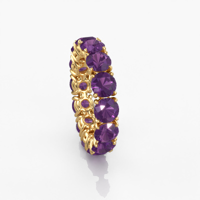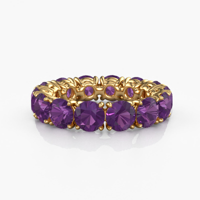 This is our Vivienne 5.0 ring. This specific type is called an eternity ring and it is set with a continuous line of identically cut gemstones. The ring is made in 14 Carat gold and is set with small amethysten, 5 mm. The amazing amethysten are identical in size and are set in the ring band. Our amethysten are selected with great care so they are identical, which gives the best result. In order to get the best result, our artisans position all amethysten by hand with the utmost care. Our Goldsmiths have one ambition, which is creating the perfect ring. That is why we love what we do. In the end you get a stunning exclusive gold ring with a row of amethysten which seem to have no beginning nor end. The perfect symbol of your undying love for her! How special is that!By using our modern techniques, we can design and customize the finest quality jewels with the utmost care for you. Our rings are always priced 30 percent lower than other jewellers. We make rings to order, so we don't have to maintain a large stock. If you have a certain budget, we are more than happy to advice you accordingly.New jewellery designs are added to our online collection daily. Our team of passionate designers strive to create extraordinary and diverse designs. Have you seen a ring you like? Please feel free to contact us. Based on a good price/ quality ratio, we will make you an offer you can't refuse!To make it easier for you, we offer a 30 day return policy. Check our terms and conditions.