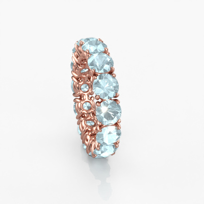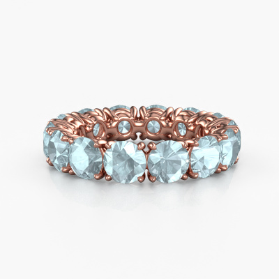 This is our Vivienne 5.0 ring. This specific type is called an eternity ring and it is set with a continuous line of identically cut gemstones. The ring is made in 14 Carat rose gold and is set with small aquamarine, 5 mm. The amazing aquamarine are identical in size and are set in the ring band. Our aquamarine are selected with great care so they are identical, which gives the best result. In order to get the best result, our artisans position all aquamarine by hand with the utmost care. Our Goldsmiths have one ambition, which is creating the perfect ring. That is why we love what we do. In the end you get a stunning exclusive rose gold ring with a row of aquamarine which seem to have no beginning nor end. The perfect symbol of your undying love for her! How special is that!By using our modern techniques, we can design and customize the finest quality jewels with the utmost care for you. Our rings are always priced 30 percent lower than other jewellers. We make rings to order, so we don't have to maintain a large stock. If you have a certain budget, we are more than happy to advice you accordingly.New jewellery designs are added to our online collection daily. Our team of passionate designers strive to create extraordinary and diverse designs. Have you seen a ring you like? Please feel free to contact us. Based on a good price/ quality ratio, we will make you an offer you can't refuse!To make it easier for you, we offer a 30 day return policy. Check our terms and conditions.