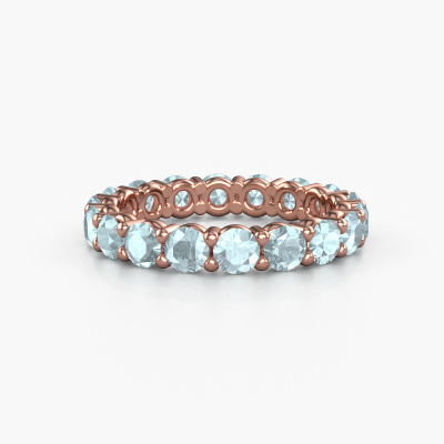 This is our Heddy rnd 3.4 ring. This specific type is called an eternity ring and it is set with a continuous line of identically cut gemstones. The ring is made in 14 Carat rose gold and is set with small aquamarine, 3.4 mm. The amazing aquamarine are identical in size and are set in the ring band. Our aquamarine are selected with great care so they are identical, which gives the best result. In order to get the best result, our artisans position all aquamarine by hand with the utmost care. Our Goldsmiths have one ambition, which is creating the perfect ring. That is why we love what we do. In the end you get a stunning modern rose gold ring with a row of aquamarine which seem to have no beginning nor end. The perfect symbol of your undying love for her! How special is that!After receiving your order, our goldsmiths will passionately start the creative process of making your ring in our own studio. Because we don't have a big stockpile, these costs will not be passed on to you. Our pricing is proof of that! We offer top quality jewels at lowest price, guaranteed.Our talented designers add new designs to our online collection daily. Together they create a diverse collection of the finest jewellery. If you prefer to make a ring according your own design, please feel free to request a quote. We will make you an amazing offer, based on quality and price.To make it easier for you, we offer a 30 day return policy. Check our terms and conditions.