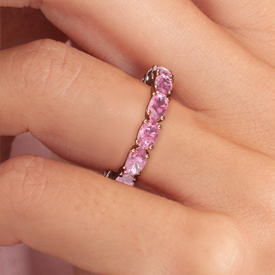 This exclusive rose gold Vivienne OVL 5x3 ring is a true work of art! This ring is made of 14 Carat rose gold and is set with 5x3 mm oval pink sapphire. The smallest ornaments are crafted by our goldsmith with a lot of patience and great passion. In order to create this ring with great precision, this craft requires a keen eye and a skilful hand. A challenge which ignites a fire in our expert goldsmiths. The exquisite pink sapphire are set in a way that their unique qualities are strengthened. This gives the ring an even more glamorous appearance. The ring is unique by itself though, because of the natural birthstones we selected especially for this Vivienne OVL 5x3 ring. And by choosing the precious metal yourself, you create a unique ring. Customize your own eternityVivienne OVL 5x3 ring, which will then be created by our goldsmiths with great passion. Do you prefer a different option than is shown here in the rose gold Vivienne OVL 5x3 ring? Then our online tools offers various options. Feel free to ask us for help if you are unable to succeed. We are happy to answer your questions!After receiving your order, our goldsmiths will passionately start the creative process of making your ring in our own studio. Because we don't have a big stockpile, these costs will not be passed on to you. Our pricing is proof of that! We offer top quality jewels at lowest price, guaranteed.To make it easier for you, we offer a 30 day return policy. Check our terms and conditions.
