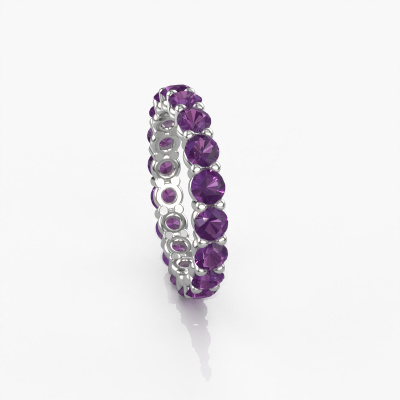 This is our Heddy rnd 3.4 ring. This specific type is called an eternity ring and it is set with a continuous line of identically cut gemstones. The ring is made in 14 Carat white gold and is set with small amethysten, 3.4 mm. The amazing amethysten are identical in size and are set in the ring band. Our amethysten are selected with great care so they are identical, which gives the best result. In order to get the best result, our artisans position all amethysten by hand with the utmost care. Our Goldsmiths have one ambition, which is creating the perfect ring. That is why we love what we do. In the end you get a stunning modern white gold ring with a row of amethysten which seem to have no beginning nor end. The perfect symbol of your undying love for her! How special is that!After receiving your order, our goldsmiths will passionately start the creative process of making your ring in our own studio. Because we don't have a big stockpile, these costs will not be passed on to you. Our pricing is proof of that! We offer top quality jewels at lowest price, guaranteed.Our talented designers add new designs to our online collection daily. Together they create a diverse collection of the finest jewellery. If you prefer to make a ring according your own design, please feel free to request a quote. We will make you an amazing offer, based on quality and price.To make it easier for you, we offer a 30 day return policy. Check our terms and conditions.