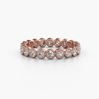 This is our Mariam 0.05 ring. This specific type is called an eternity ring and it is set with a continuous line of identically cut gemstones. The ring is made in 14 Carat rose gold and is set with small diamonds, 1.10 crt. The amazing diamonds are identical in size and are set in the ring band. Our diamonds are selected with great care so they are identical, which gives the best result. In order to get the best result, our artisans position all diamonds by hand with the utmost care. Our Goldsmiths have one ambition, which is creating the perfect ring. That is why we love what we do. In the end you get a stunning modern rose gold ring with a row of diamonds which seem to have no beginning nor end. The perfect symbol of your undying love for her! How special is that!By using a combination of the latest modern techniques, combined with ancient crafting, we can make all our rings in our own studio. Each jewel is made to order. This is advantageous because we can offer you a price you won't find anywhere else.