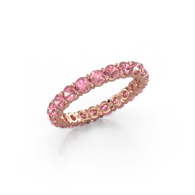 This is our Heddy rnd 2.9 ring. This specific type is called an eternity ring and it is set with a continuous line of identically cut gemstones. The ring is made in 14 Carat rose gold and is set with small tourmaline pink, 2.9 mm. The amazing tourmaline pink are identical in size and are set in the ring band. Our tourmaline pink are selected with great care so they are identical, which gives the best result. In order to get the best result, our artisans position all tourmaline pink by hand with the utmost care. Our Goldsmiths have one ambition, which is creating the perfect ring. That is why we love what we do. In the end you get a stunning classic rose gold ring with a row of tourmaline pink which seem to have no beginning nor end. The perfect symbol of your undying love for her! How special is that!By using a combination of the latest modern techniques, combined with ancient crafting, we can make all our rings in our own studio. Each jewel is made to order. This is advantageous because we can offer you a price you won't find anywhere else.