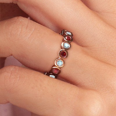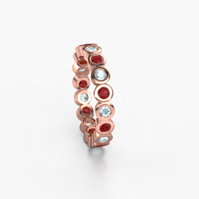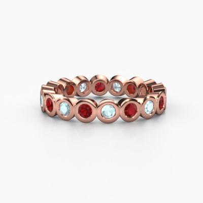 This is our Edwina 2 ring. This specific type is called an eternity ring and it is set with a continuous line of identically cut gemstones. The ring is made in 14 Carat rose gold and is set with small ruby, 2.5 mm. The amazing ruby are identical in size and are set in the ring band. Our ruby are selected with great care so they are identical, which gives the best result. In order to get the best result, our artisans position all ruby by hand with the utmost care. Our Goldsmiths have one ambition, which is creating the perfect ring. That is why we love what we do. In the end you get a stunning trendy rose gold stackable ring with a row of ruby which seem to have no beginning nor end. The perfect symbol of your undying love for her! How special is that!By using our modern techniques, we can design and customize the finest quality jewels with the utmost care for you. Our rings are always priced 30 percent lower than other jewellers. We make rings to order, so we don't have to maintain a large stock. If you have a certain budget, we are more than happy to advice you accordingly.Our talented designers add new designs to our online collection daily. Together they create a diverse collection of the finest jewellery. If you prefer to make a ring according your own design, please feel free to request a quote. We will make you an amazing offer, based on quality and price.To make it easier for you, we offer a 30 day return policy. Check our terms and conditions.