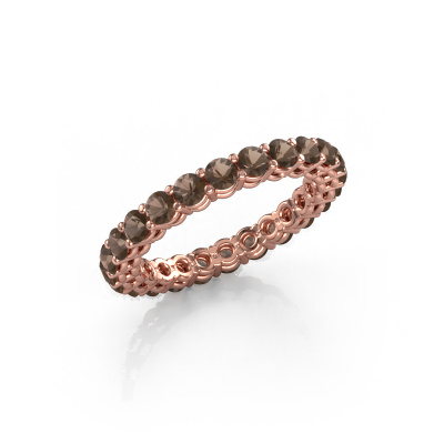 This is our Michelle full 2.7 ring. This specific type is called an eternity ring and it is set with a continuous line of identically cut gemstones. The ring is made in 14 Carat rose gold and is set with small smokey quartz, 2.7 mm. The amazing smokey quartz are identical in size and are set in the ring band. Our smokey quartz are selected with great care so they are identical, which gives the best result. In order to get the best result, our artisans position all smokey quartz by hand with the utmost care. Our Goldsmiths have one ambition, which is creating the perfect ring. That is why we love what we do. In the end you get a stunning classic rose gold stackable ring with a row of smokey quartz which seem to have no beginning nor end. The perfect symbol of your undying love for her! How special is that!By using a combination of the latest modern techniques, combined with ancient crafting, we can make all our rings in our own studio. Each jewel is made to order. This is advantageous because we can offer you a price you won't find anywhere else.New jewellery designs are added to our online collection daily. Our team of passionate designers strive to create extraordinary and diverse designs. Have you seen a ring you like? Please feel free to contact us. Based on a good price/ quality ratio, we will make you an offer you can't refuse!To make it easier for you, we offer a 30 day return policy. Check our terms and conditions.