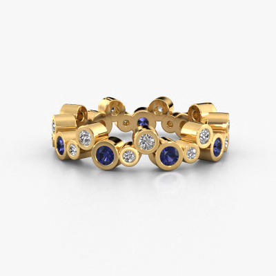This is our Tessa ring. This specific type is called an eternity ring and it is set with a continuous line of identically cut gemstones. The ring is made in 14 Carat gold and is set with small sapphire, 2.5 mm. This gold Eternity ring is a perfectly beautiful and meaningful way to give your proposal that special touch. The magnificent evenly shaped sapphire are pave set around the ring. The identical sapphire are carefully selected to give the ring a maximum effect. Do keep in mind we use natural resources so small differences between stones are common. The special effect is enhanced due to precise positioning of the sapphire. This requires the utmost precision and a skilful hand but for our skilled artisans this is what excites them. The result is a ring with a row of sapphire which seem to have no beginning nor end. The perfect symbol of your love for her! Isn't she a beauty?By using our modern techniques, we can design and customize the finest quality jewels with the utmost care for you. Our rings are always priced 30 percent lower than other jewellers. We make rings to order, so we don't have to maintain a large stock. If you have a certain budget, we are more than happy to advice you accordingly.Our talented designers add new designs to our online collection daily. Together they create a diverse collection of the finest jewellery. If you prefer to make a ring according your own design, please feel free to request a quote. We will make you an amazing offer, based on quality and price.To make it easier for you, we offer a 30 day return policy. Check our terms and conditions.