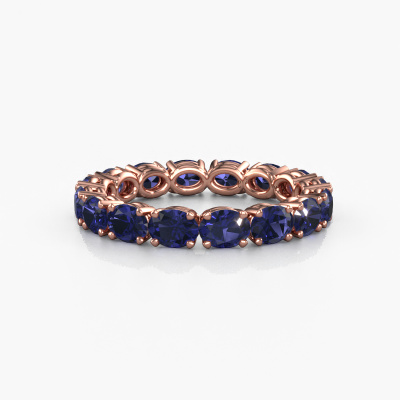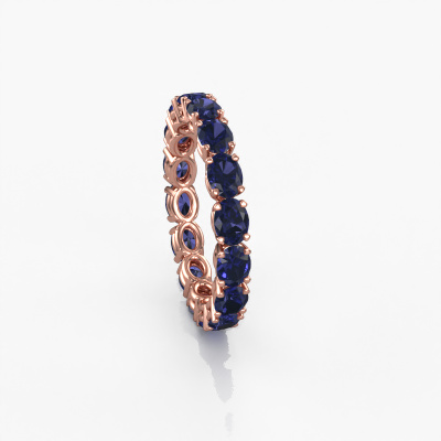 This is our Vivienne OVL 4x3 ring. This specific type is called an eternity ring and it is set with a continuous line of identically cut gemstones. The ring is made in 14 Carat rose gold and is set with small sapphire, 4x3 mm. This rose gold Eternity ring is a perfectly beautiful and meaningful way to give your proposal that special touch. The magnificent evenly shaped sapphire are pave set around the ring. The identical sapphire are carefully selected to give the ring a maximum effect. Do keep in mind we use natural resources so small differences between stones are common. The special effect is enhanced due to precise positioning of the sapphire. This requires the utmost precision and a skilful hand but for our skilled artisans this is what excites them. The result is a ring with a row of sapphire which seem to have no beginning nor end. The perfect symbol of your love for her! Isn't she a beauty?Because we design and deliver our own rings, we can offer you a ring at a price you won't find anywhere else. A ring is made to order, which helps prevent excess supplies, so we can make you a great price offer. We understand it feels risky, buying your ring online, but we will gladly assist in the designing process, taking your budget into consideration.Our team of talented, passionate designers add new ring designs to our online collection daily. Our objective in doing so, is to be able to offer you a wide variety of jewels. Please feel free to request a quote if you have specific wishes for your ring. We guarantee to make you an offer you can't refuse.To make it easier for you, we offer a 30 day return policy. Check our terms and conditions.