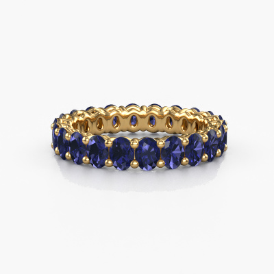 This is our Heddy OVL 3x4 ring. This specific type is called an eternity ring and it is set with a continuous line of identically cut gemstones. The ring is made in 14 Carat gold and is set with small sapphire, 4x3 mm. This gold Eternity ring is a perfectly beautiful and meaningful way to give your proposal that special touch. The magnificent evenly shaped sapphire are pave set around the ring. The identical sapphire are carefully selected to give the ring a maximum effect. Do keep in mind we use natural resources so small differences between stones are common. The special effect is enhanced due to precise positioning of the sapphire. This requires the utmost precision and a skilful hand but for our skilled artisans this is what excites them. The result is a stackable ring with a row of sapphire which seem to have no beginning nor end. The perfect symbol of your love for her! Isn't she a beauty?After receiving your order, our goldsmiths will start the creative process of making your Heddy OVL 3x4 ring. We don't keep stock. This is advantageous because these costs will not be passed on to you. Therefore, we can offer jewellery at exceptionally low prices.