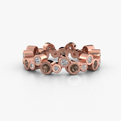 This is our Tessa ring. This specific type is called an eternity ring and it is set with a continuous line of identically cut gemstones. The ring is made in 14 Carat rose gold and is set with small smokey quartz, 2.5 mm. This rose gold Eternity ring is a perfectly beautiful and meaningful way to give your proposal that special touch. The magnificent evenly shaped smokey quartz are pave set around the ring. The identical smokey quartz are carefully selected to give the ring a maximum effect. Do keep in mind we use natural resources so small differences between stones are common. The special effect is enhanced due to precise positioning of the smokey quartz. This requires the utmost precision and a skilful hand but for our skilled artisans this is what excites them. The result is a ring with a row of smokey quartz which seem to have no beginning nor end. The perfect symbol of your love for her! Isn't she a beauty?By using our modern techniques, we can design and customize the finest quality jewels with the utmost care for you. Our rings are always priced 30 percent lower than other jewellers. We make rings to order, so we don't have to maintain a large stock. If you have a certain budget, we are more than happy to advice you accordingly.Our talented designers add new designs to our online collection daily. Together they create a diverse collection of the finest jewellery. If you prefer to make a ring according your own design, please feel free to request a quote. We will make you an amazing offer, based on quality and price.To make it easier for you, we offer a 30 day return policy. Check our terms and conditions.