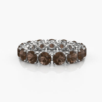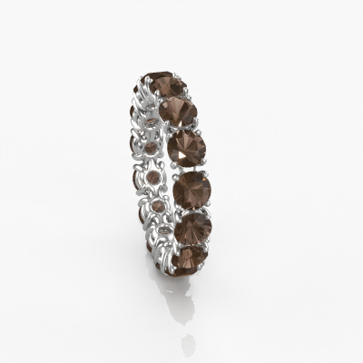 This is our Vivienne 4.2 ring. This specific type is called an eternity ring and it is set with a continuous line of identically cut gemstones. The ring is made in 14 Carat white gold and is set with small smokey quartz, 4.2 mm. This white gold Eternity ring is a perfectly beautiful and meaningful way to give your proposal that special touch. The magnificent evenly shaped smokey quartz are pave set around the ring. The identical smokey quartz are carefully selected to give the ring a maximum effect. Do keep in mind we use natural resources so small differences between stones are common. The special effect is enhanced due to precise positioning of the smokey quartz. This requires the utmost precision and a skilful hand but for our skilled artisans this is what excites them. The result is a ring with a row of smokey quartz which seem to have no beginning nor end. The perfect symbol of your love for her! Isn't she a beauty?By using a combination of the latest modern techniques, combined with ancient crafting, we can make all our rings in our own studio. Each jewel is made to order. This is advantageous because we can offer you a price you won't find anywhere else.