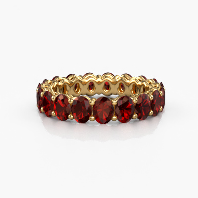 This is our Heddy OVL 3.5x4.5 ring. This specific type is called an eternity ring and it is set with a continuous line of identically cut gemstones. The ring is made in 14 Carat gold and is set with small garnet, 4.5x3.5 mm. The amazing garnet are identical in size and are set in the ring band. Our garnet are selected with great care so they are identical, which gives the best result. In order to get the best result, our artisans position all garnet by hand with the utmost care. Our Goldsmiths have one ambition, which is creating the perfect ring. That is why we love what we do. In the end you get a stunning fantasy gold stackable ring with a row of garnet which seem to have no beginning nor end. The perfect symbol of your undying love for her! How special is that!By using a combination of the latest modern techniques, combined with ancient crafting, we can make all our rings in our own studio. Each jewel is made to order. This is advantageous because we can offer you a price you won't find anywhere else.Our team of talented, passionate designers add new ring designs to our online collection daily. Our objective in doing so, is to be able to offer you a wide variety of jewels. Please feel free to request a quote if you have specific wishes for your ring. We guarantee to make you an offer you can't refuse.To make it easier for you, we offer a 30 day return policy. Check our terms and conditions.