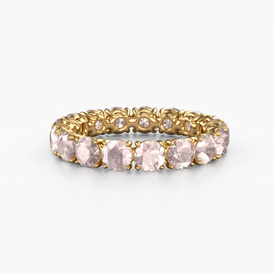 This is our Vivienne 3.7 ring. This specific type is called an eternity ring and it is set with a continuous line of identically cut gemstones. The ring is made in 14 Carat gold and is set with small morganite champagne, 3.7 mm. The amazing morganite champagne are identical in size and are set in the ring band. Our morganite champagne are selected with great care so they are identical, which gives the best result. In order to get the best result, our artisans position all morganite champagne by hand with the utmost care. Our Goldsmiths have one ambition, which is creating the perfect ring. That is why we love what we do. In the end you get a stunning classic gold stackable ring with a row of morganite champagne which seem to have no beginning nor end. The perfect symbol of your undying love for her! How special is that!