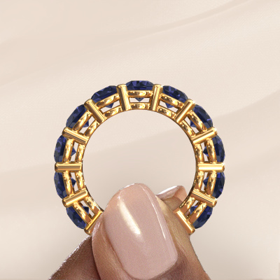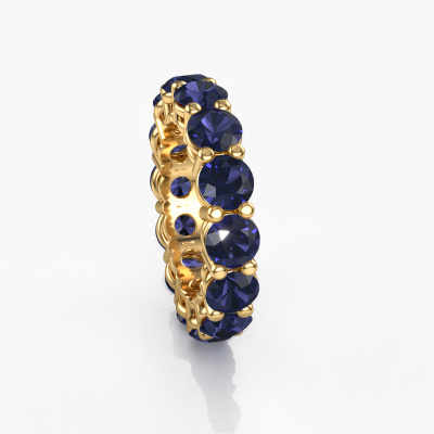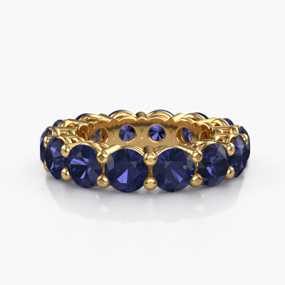 This is our Michelle full 5.0 ring. This specific type is called an eternity ring and it is set with a continuous line of identically cut gemstones. The ring is made in 14 Carat gold and is set with small sapphire, 5 mm. The amazing sapphire are identical in size and are set in the ring band. Our sapphire are selected with great care so they are identical, which gives the best result. In order to get the best result, our artisans position all sapphire by hand with the utmost care. Our Goldsmiths have one ambition, which is creating the perfect ring. That is why we love what we do. In the end you get a stunning exclusive gold stackable ring with a row of sapphire which seem to have no beginning nor end. The perfect symbol of your undying love for her! How special is that!By using a combination of the latest modern techniques, combined with ancient crafting, we can make all our rings in our own studio. Each jewel is made to order. This is advantageous because we can offer you a price you won't find anywhere else.New jewellery designs are added to our online collection daily. Our team of passionate designers strive to create extraordinary and diverse designs. Have you seen a ring you like? Please feel free to contact us. Based on a good price/ quality ratio, we will make you an offer you can't refuse!To make it easier for you, we offer a 30 day return policy. Check our terms and conditions.