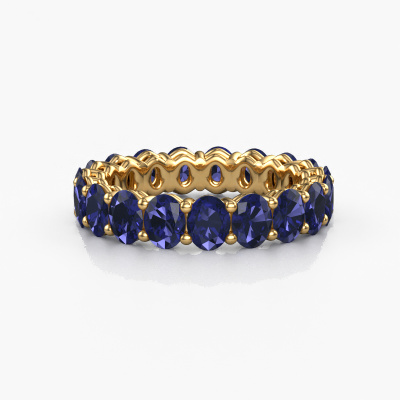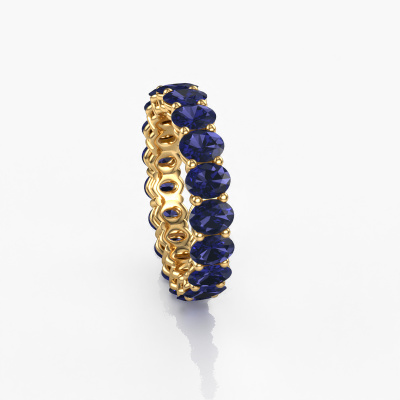 This is our Heddy OVL 3.5x4.5 ring. This specific type is called an eternity ring and it is set with a continuous line of identically cut gemstones. The ring is made in 14 Carat gold and is set with small sapphire, 4.5x3.5 mm. The amazing sapphire are identical in size and are set in the ring band. Our sapphire are selected with great care so they are identical, which gives the best result. In order to get the best result, our artisans position all sapphire by hand with the utmost care. Our Goldsmiths have one ambition, which is creating the perfect ring. That is why we love what we do. In the end you get a stunning fantasy gold stackable ring with a row of sapphire which seem to have no beginning nor end. The perfect symbol of your undying love for her! How special is that!By using a combination of the latest modern techniques, combined with ancient crafting, we can make all our rings in our own studio. Each jewel is made to order. This is advantageous because we can offer you a price you won't find anywhere else.Our team of talented, passionate designers add new ring designs to our online collection daily. Our objective in doing so, is to be able to offer you a wide variety of jewels. Please feel free to request a quote if you have specific wishes for your ring. We guarantee to make you an offer you can't refuse.To make it easier for you, we offer a 30 day return policy. Check our terms and conditions.
