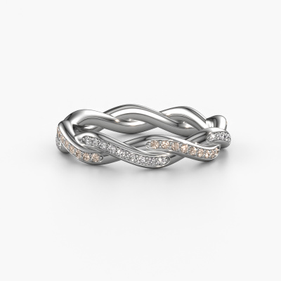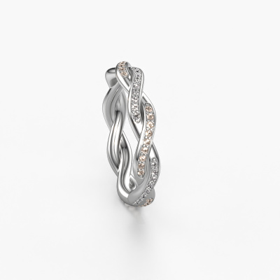This is our Swing full ring. This specific type is called an eternity ring and it is set with a continuous line of identically cut gemstones. The ring is made in platinum and is set with small brown diamonds, 0.36 crt. The amazing brown diamonds are identical in size and are set in the ring band. Our brown diamonds are selected with great care so they are identical, which gives the best result. In order to get the best result, our artisans position all brown diamonds by hand with the utmost care. Our Goldsmiths have one ambition, which is creating the perfect ring. That is why we love what we do. In the end you get a stunning fantasy platinum stackable ring with a row of brown diamonds which seem to have no beginning nor end. The perfect symbol of your undying love for her! How special is that!After receiving your order, our goldsmiths will passionately start the creative process of making your ring in our own studio. Because we don't have a big stockpile, these costs will not be passed on to you. Our pricing is proof of that! We offer top quality jewels at lowest price, guaranteed.New jewellery designs are added to our online collection daily. Our team of passionate designers strive to create extraordinary and diverse designs. Have you seen a ring you like? Please feel free to contact us. Based on a good price/ quality ratio, we will make you an offer you can't refuse!To make it easier for you, we offer a 30 day return policy. Check our terms and conditions.