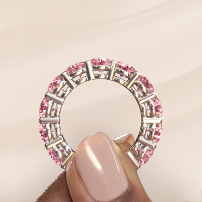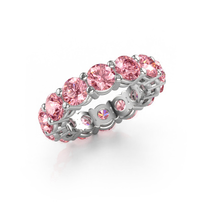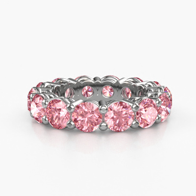 This is our Michelle full 5.0 ring. This specific type is called an eternity ring and it is set with a continuous line of identically cut gemstones. The ring is made in platinum and is set with small pink lab grown diamonds, 5 mm. The amazing pink lab grown diamonds are identical in size and are set in the ring band. Our pink lab grown diamonds are selected with great care so they are identical, which gives the best result. In order to get the best result, our artisans position all pink lab grown diamonds by hand with the utmost care. Our Goldsmiths have one ambition, which is creating the perfect ring. That is why we love what we do. In the end you get a stunning exclusive platinum stackable ring with a row of pink lab grown diamonds which seem to have no beginning nor end. The perfect symbol of your undying love for her! How special is that!By using a combination of the latest modern techniques, combined with ancient crafting, we can make all our rings in our own studio. Each jewel is made to order. This is advantageous because we can offer you a price you won't find anywhere else.New jewellery designs are added to our online collection daily. Our team of passionate designers strive to create extraordinary and diverse designs. Have you seen a ring you like? Please feel free to contact us. Based on a good price/ quality ratio, we will make you an offer you can't refuse!To make it easier for you, we offer a 30 day return policy. Check our terms and conditions.