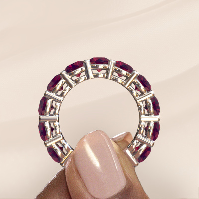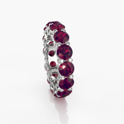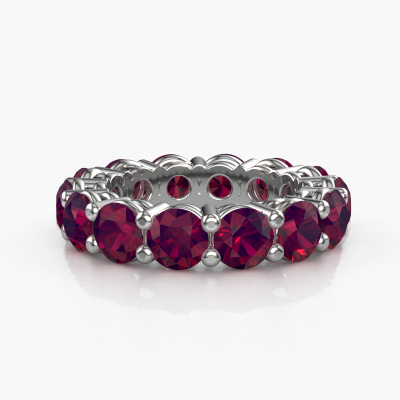 This is our Michelle full 5.0 ring. This specific type is called an eternity ring and it is set with a continuous line of identically cut gemstones. The ring is made in platinum and is set with small rhodolite, 5 mm. The amazing rhodolite are identical in size and are set in the ring band. Our rhodolite are selected with great care so they are identical, which gives the best result. In order to get the best result, our artisans position all rhodolite by hand with the utmost care. Our Goldsmiths have one ambition, which is creating the perfect ring. That is why we love what we do. In the end you get a stunning exclusive platinum stackable ring with a row of rhodolite which seem to have no beginning nor end. The perfect symbol of your undying love for her! How special is that!By using a combination of the latest modern techniques, combined with ancient crafting, we can make all our rings in our own studio. Each jewel is made to order. This is advantageous because we can offer you a price you won't find anywhere else.New jewellery designs are added to our online collection daily. Our team of passionate designers strive to create extraordinary and diverse designs. Have you seen a ring you like? Please feel free to contact us. Based on a good price/ quality ratio, we will make you an offer you can't refuse!To make it easier for you, we offer a 30 day return policy. Check our terms and conditions.