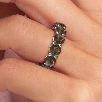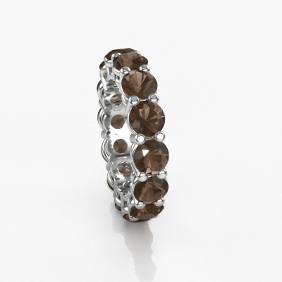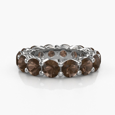 This is our Michelle full 5.0 ring. This specific type is called an eternity ring and it is set with a continuous line of identically cut gemstones. The ring is made in platinum and is set with small smokey quartz, 5 mm. The amazing smokey quartz are identical in size and are set in the ring band. Our smokey quartz are selected with great care so they are identical, which gives the best result. In order to get the best result, our artisans position all smokey quartz by hand with the utmost care. Our Goldsmiths have one ambition, which is creating the perfect ring. That is why we love what we do. In the end you get a stunning exclusive platinum stackable ring with a row of smokey quartz which seem to have no beginning nor end. The perfect symbol of your undying love for her! How special is that!By using a combination of the latest modern techniques, combined with ancient crafting, we can make all our rings in our own studio. Each jewel is made to order. This is advantageous because we can offer you a price you won't find anywhere else.New jewellery designs are added to our online collection daily. Our team of passionate designers strive to create extraordinary and diverse designs. Have you seen a ring you like? Please feel free to contact us. Based on a good price/ quality ratio, we will make you an offer you can't refuse!To make it easier for you, we offer a 30 day return policy. Check our terms and conditions.