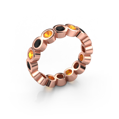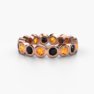 This is our Edwina 3 ring. This specific type is called an eternity ring and it is set with a continuous line of identically cut gemstones. The ring is made in 14 Carat rose gold and is set with small black diamonds, 0.96 crt. The amazing black diamonds are identical in size and are set in the ring band. Our black diamonds are selected with great care so they are identical, which gives the best result. In order to get the best result, our artisans position all black diamonds by hand with the utmost care. Our Goldsmiths have one ambition, which is creating the perfect ring. That is why we love what we do. In the end you get a stunning trendy rose gold stackable ring with a row of black diamonds which seem to have no beginning nor end. The perfect symbol of your undying love for her! How special is that!After receiving your order, our goldsmiths will passionately start the creative process of making your ring in our own studio. Because we don't have a big stockpile, these costs will not be passed on to you. Our pricing is proof of that! We offer top quality jewels at lowest price, guaranteed.Our team of talented, passionate designers add new ring designs to our online collection daily. Our objective in doing so, is to be able to offer you a wide variety of jewels. Please feel free to request a quote if you have specific wishes for your ring. We guarantee to make you an offer you can't refuse.To make it easier for you, we offer a 30 day return policy. Check our terms and conditions.